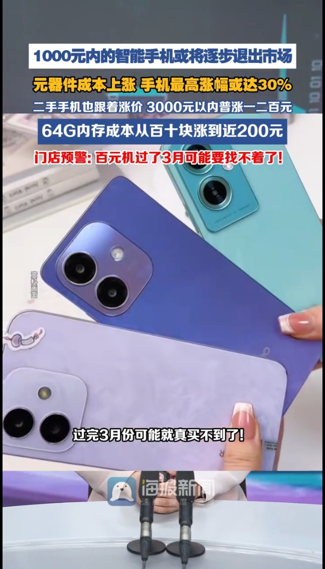 这波涨价也传导至二手市场,3000元以内二手机普涨一二百元,高端机型涨幅更大。各品牌销售人员一致提醒,现在还有国补、店补,价格相对划算,不管哪个品牌,有购机需求趁早入手,越拖价格越贵、可选机型越少。