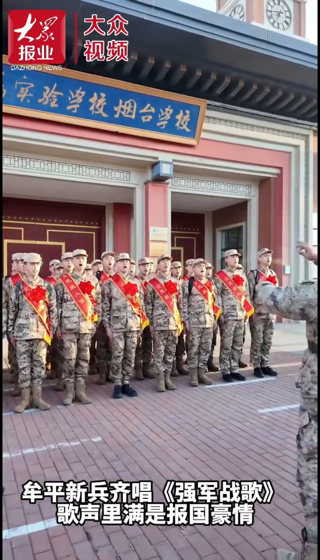 烟台市牟平区入伍新兵齐唱《强军战歌》,歌声中满是报国豪情。