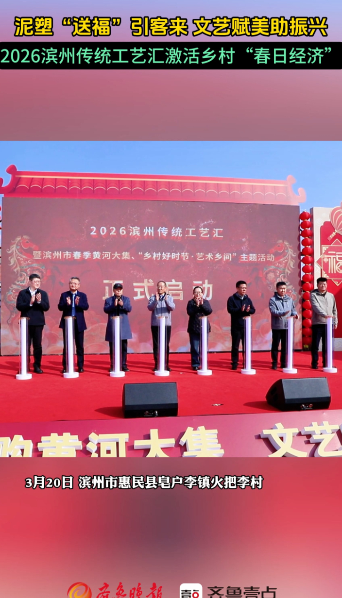 惠民泥塑“送福”引客来 文艺赋美助振兴大众报业·齐鲁壹点 17:163月20日,农历二月初二,2026滨州传统工艺汇暨滨州市黄河大集、“乡村好时节 艺术乡间”在山东省滨州市惠民县皂户李镇火把李村启动。 本次活动以“乐购黄河大集 文艺赋美乡村”为主题,深挖黄河流域非遗与传统工艺底蕴,打破静态展示局限,联动展销、体验、民俗、促消费等多元场景,让古老非遗技艺变身春日经济“流量密码”,拉动乡村消费、带动群众增收,实现文化传承与经济发展同频共振。