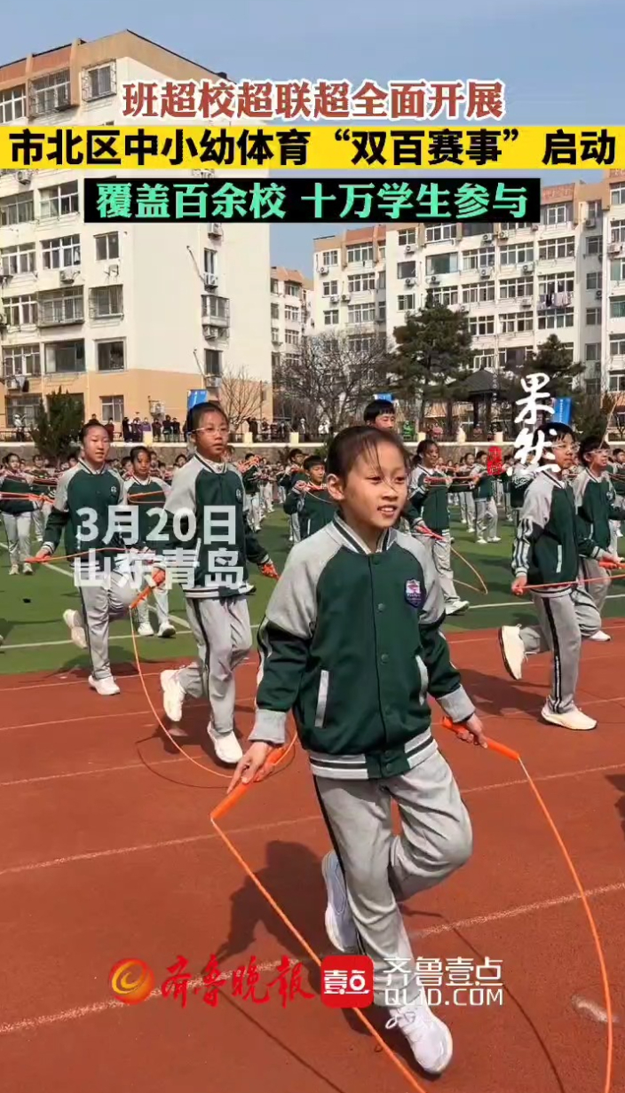 果然视频丨市北区中小幼体育“双百赛事”启动 十万学生参与齐鲁晚报·齐鲁壹点客户端 06:16原创3月20日,青岛市市北区中小幼体育“双百赛事”在青岛长沙路小学启动。本次赛事贯穿全年,覆盖市北区中小学幼儿园十万余人。将设置兼具竞技性与趣味性的多元化运动项目,让不同年龄段的学生都能广泛参与。此次活动以体育赛事为载体,贯彻落实教育部“健康第一”的教育理念,生动彰显“学在市北”的育人温度与教育品质。(齐鲁晚报·齐鲁壹点 李珍梅 实习生 王颖馨)