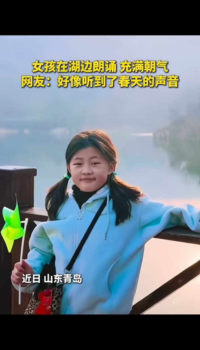 元气满满!女孩在湖边朗诵,“我就是春天新长出的人”
