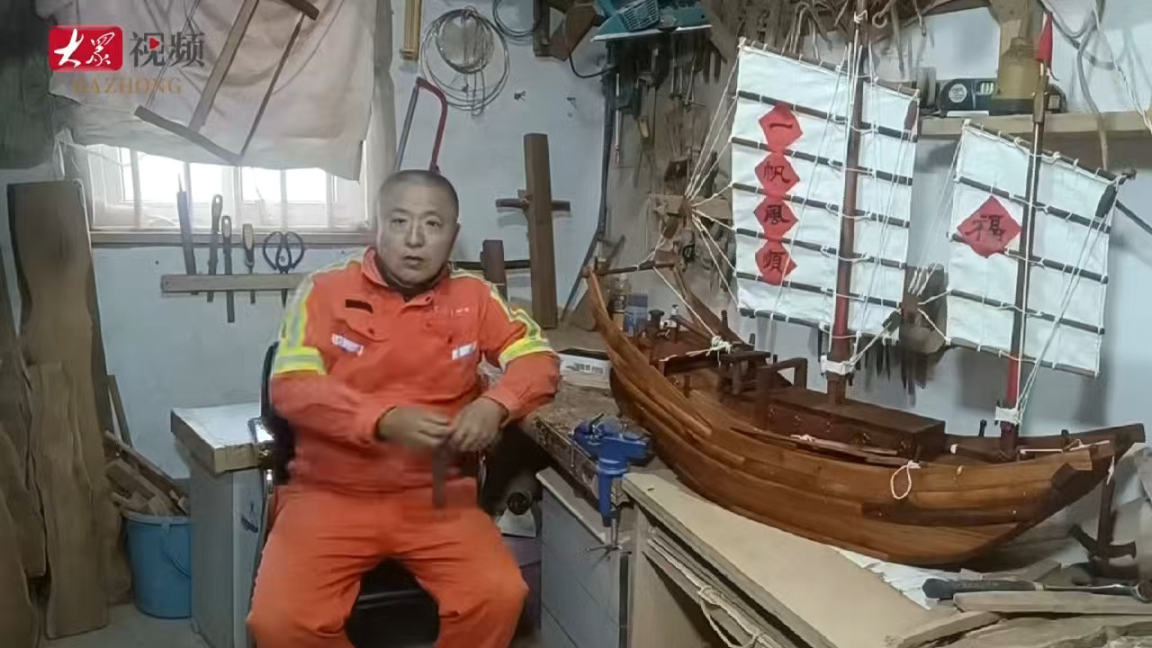 它们的制作者叫盛文祥,是莱州古帆船制作技艺第四代传承人、烟台市级非遗代表性传承人。盛文祥与船打了一辈子交道,他把自家车库变成“微型造船厂”,潜心钻研古法造船技艺,让濒临失传的老手艺在新时代重焕生机。
