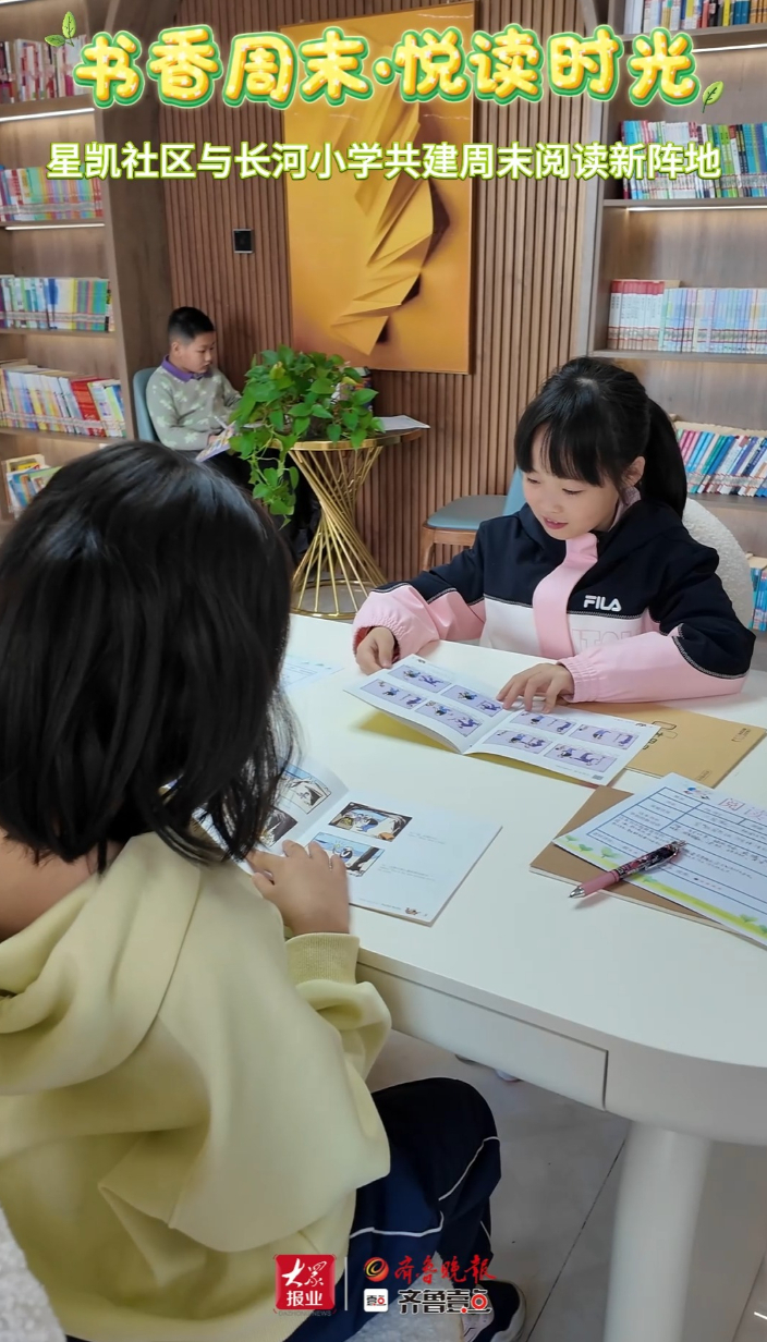 书香润童心!德州天衢新区星凯社区与长河小学共建周末阅读新阵地。(齐鲁晚报·齐鲁壹点 张雅宁)