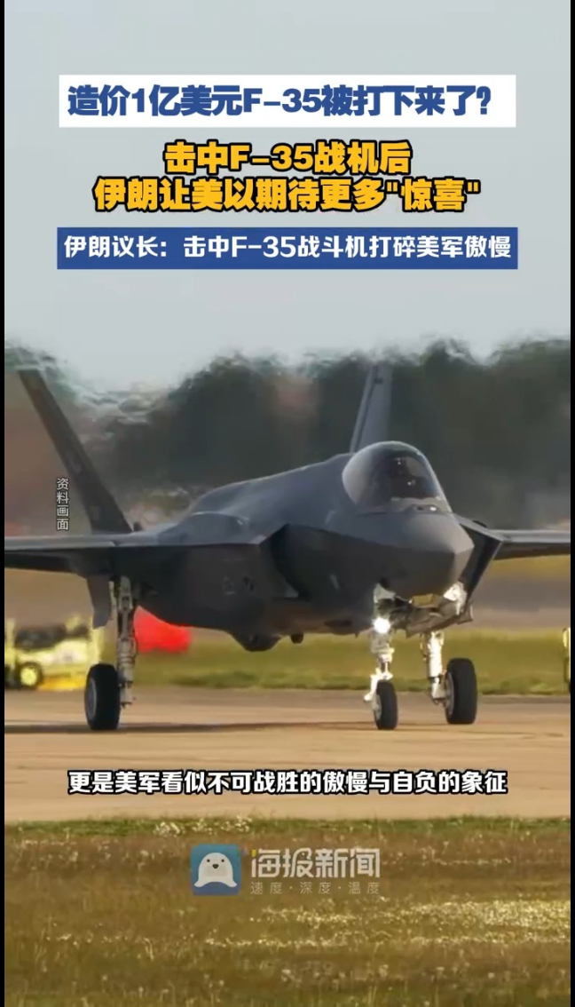 造价1亿美元F-35被打下来了?伊朗宣布击中美军机,伊朗议长:击中F-35战斗机打碎美军傲慢!其表示“F-35不仅仅是一款隐形战斗机,更是美军看似不可战胜的傲慢与自负的象征。美国声称没有任何力量能够看见它、超越它——然而,它最终还是首次被击中了,这是一个秩序瓦解的时刻。”