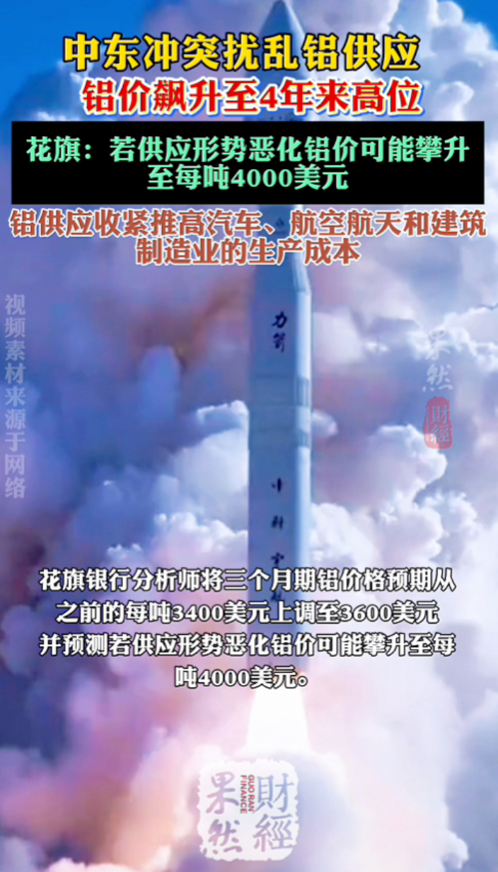 果然财经|中东冲突扰乱铝供应,铝价飙升至4年来高位