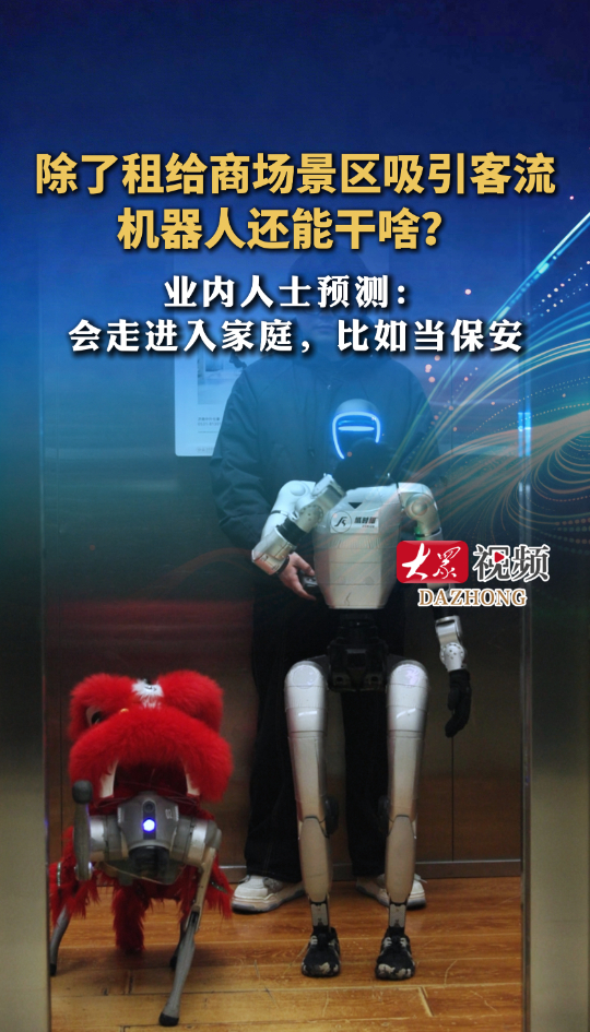 除了吸引客流,机器人还能干啥?业内人士预测:会走进入家庭,比如当保安大众新闻 07:52原创最近,机器人租赁市场持续火爆。山东金锐信息技术有限公司交付执行经理吴金闯指出,目前机器人租赁主要集中在娱乐表演领域,随着消费者新鲜感减退,拓展差异化应用场景已成为关键。多米智航(山东)电子科技有限公司负责人季勇成则认为,未来机器人将深入人居生活,开拓更多实用场景,进一步释放市场潜力。(大众新闻记者 凌志 卢鹏 高广超 王琛)