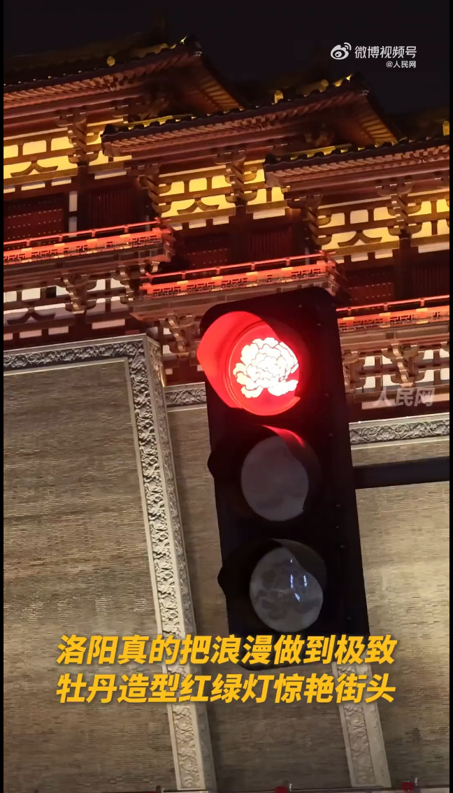 在河南洛阳,牡丹造型的红绿灯惊艳街头,创造出独属洛阳的“国色天香”。网友: