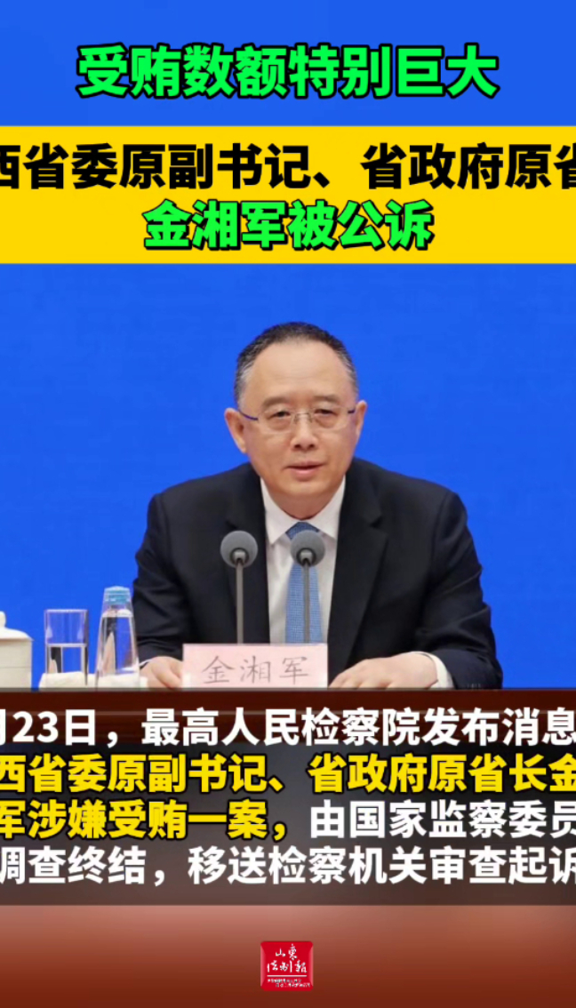 受贿数额特别巨大,山西省委原副书记、省政府原省长金湘军被公诉