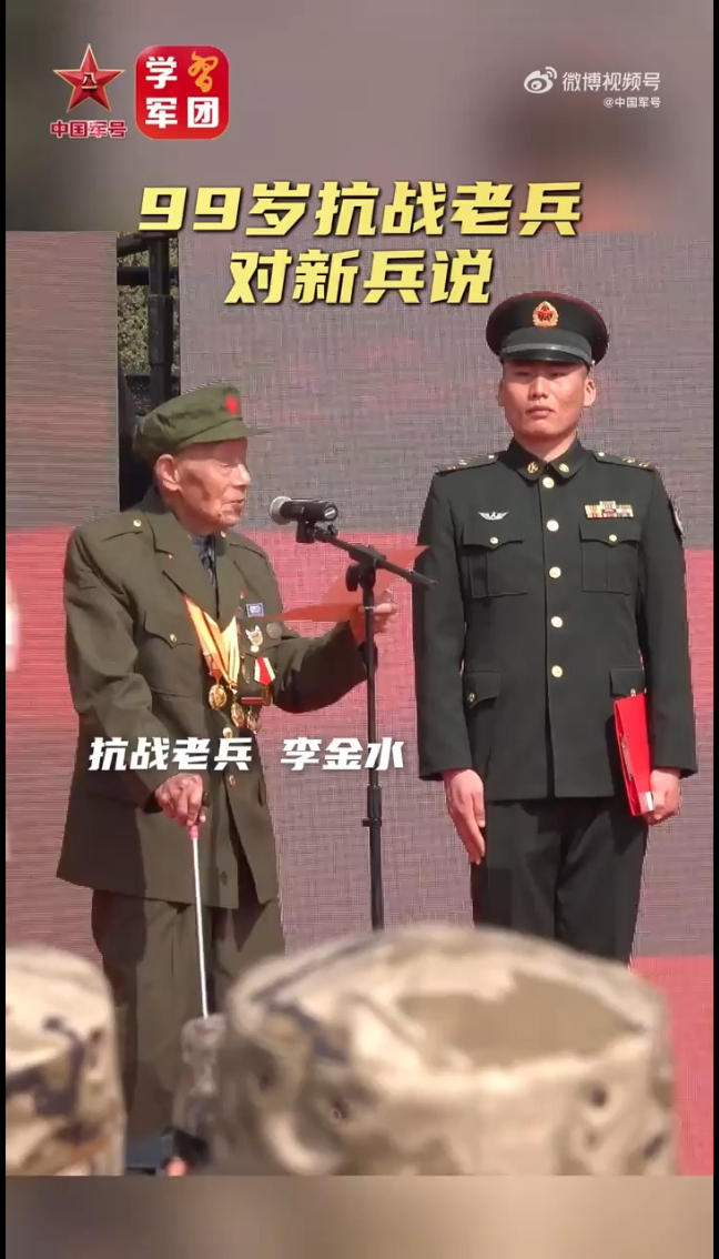 加油!99岁抗战老兵深情寄语新兵