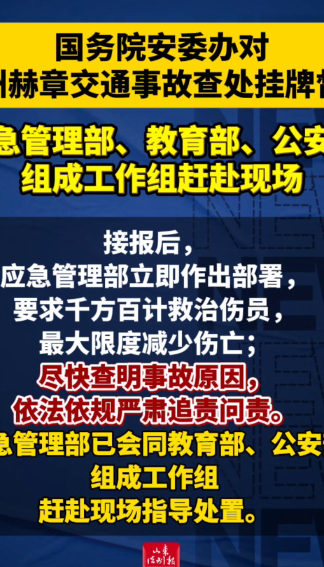 国务院安委办对贵州赫章交通事故查处挂牌督办 应急管理部、教育部、公安部组成工作组赶赴现场