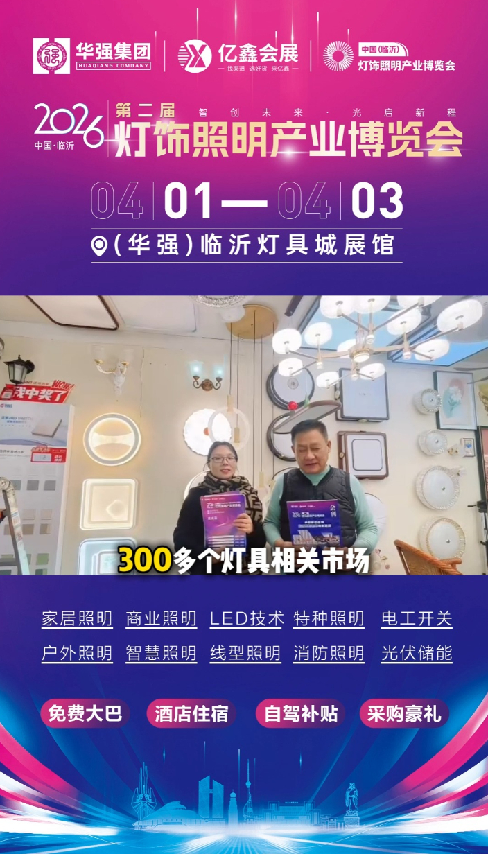 新增两大主题展区!第二届华强灯饰照明展4月1日至3日亮相临沂大众报业·齐鲁壹点 16:582026年4月1日至3日,2026中国临沂第二届灯饰照明产业博览会在山东临沂举办。与上一届相比,今年展会新增“智能照明体验馆”和“全案灯光设计中心”,整体扩容30%。