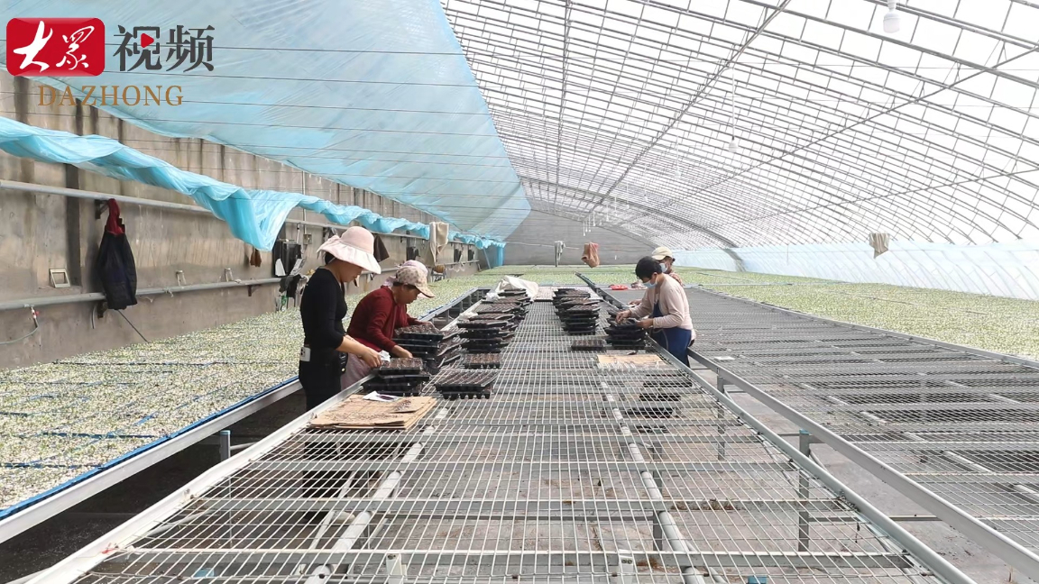 在巨野县章缝镇德福育苗基地的智能温室大棚内,工人们分工协作、熟练作业,装基质、压穴盘、精准点种,一粒粒优质辣椒种子被有序播入营养钵。另一侧大棚里,破土而出的辣椒幼苗绿意盎然、整齐成行,工作人员细致巡查苗情,监测温湿度与种苗长势,精心呵护每一株“致富苗”。