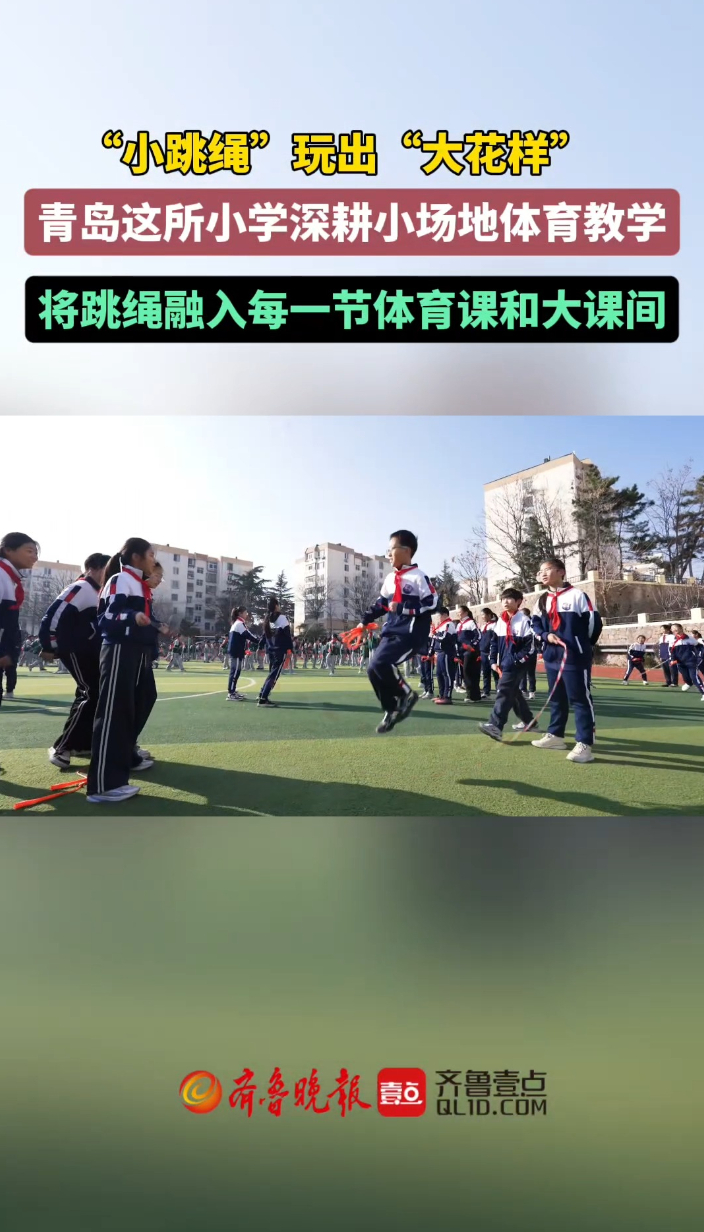 小跳绳玩出大花样!青岛这所小学以一绳之力撬动校园大健康齐鲁晚报·齐鲁壹点客户端 18:57原创一根跳绳,激活整个校园。面对校园活动空间有限的现状,青岛长沙路小学秉持“全员参与、科学普及”的理念,将跳绳融入每一节体育课、每一次大课间。从班级挑战赛到校级选拔赛,从基础动作教学到花样技巧提升,跳绳这一传统项目在校园里迸发新的活力。学校在2022年青岛市体质监测中成绩位居全市第一,并多次在市级现场会做经验交流;在2024年市体质监测中继续名列前茅。 (齐鲁晚报·齐鲁壹点 李珍梅)