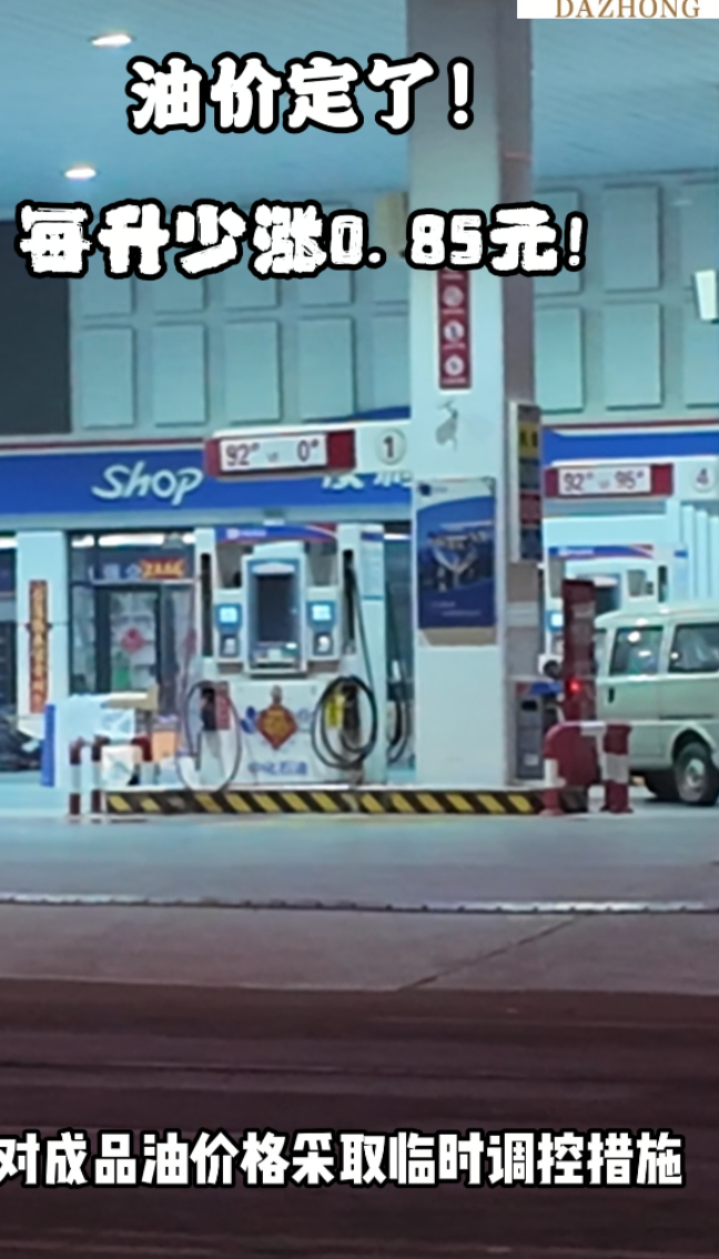 每升少涨0.85元!直击烟台油价调整瞬间 08:08 原创大众新闻 微信扫码扫码下载客户端3月23日24时,记者在烟台市幸福中路中化石油加油站目击,每升92号汽油8.53元,较昨日上涨0.93元;每升95号汽油9.15元,较昨日上涨1元据悉,国家对成品油价格采取临时调控措施,国内汽、柴油价格(标准品)每吨分别应上调2205元、2120元,调控后实际上调1160元、1115元,相比不作调控,每升少涨0.85元左右。(大众新闻记者 秦光然 邢金钰)