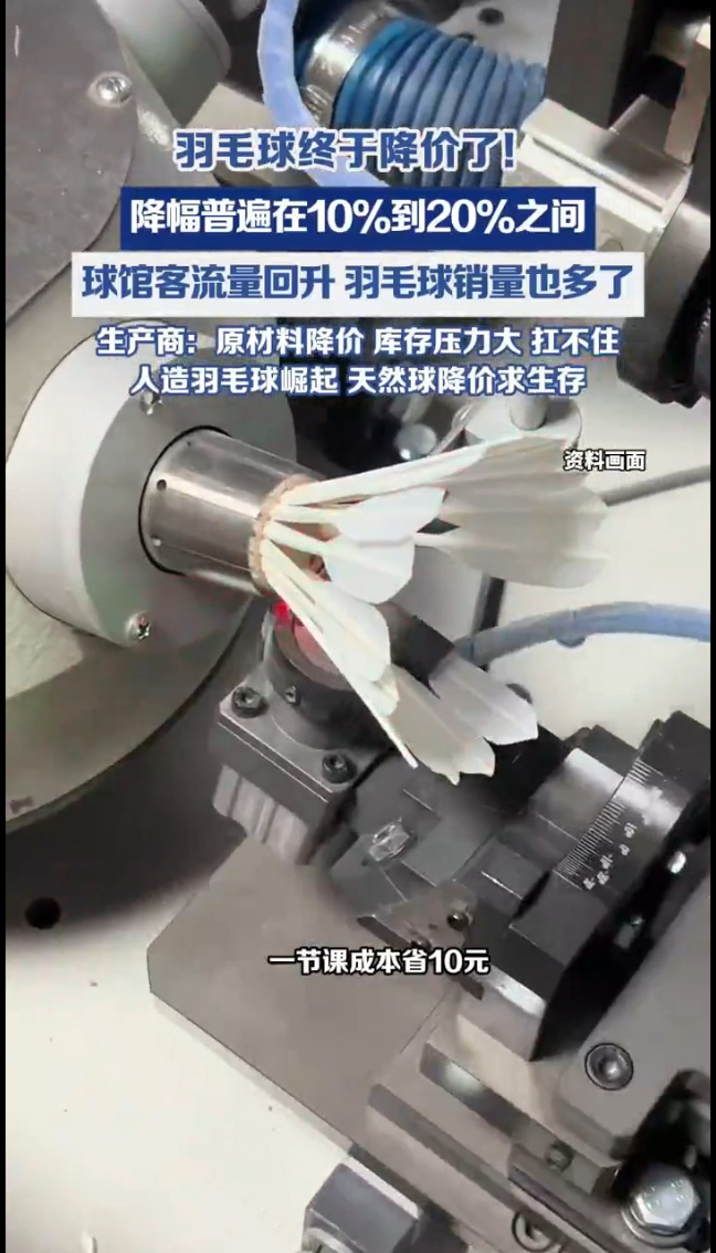 目前,多家主流品牌宣布降价,幅度普遍在10%到20%。深圳一家球馆负责人说,去年卖298元一筒的鹅毛球,现在降到260元左右。球降价后,场地预订量多了,羽毛球销量也上来了。有教练算了一笔账,一节课成本省10元,一个月能省两三千元。