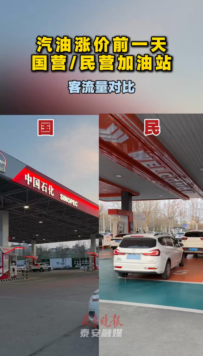 果然视频|汽油涨价前一天,国营/民营加油站客流量对比