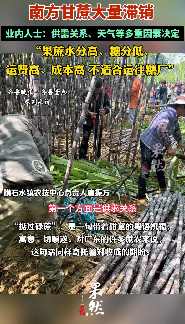 果然视频|为何大量滞销?广东甘蔗收购价较往年近乎腰斩