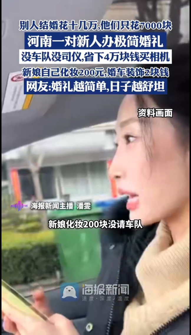 河南这对小两口的婚礼火了!总花费不到7000元,其中婚车装饰2块钱,新娘化妆200块,没请车队,没有煽情环节,整个婚礼筹备只用了20多天。