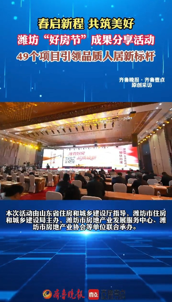 果然视频|潍坊“好房节”成果分享活动成举办齐鲁晚报·齐鲁壹点客户端 20:27原创3月23日下午,“潍有好房 品质焕新”——潍坊“好房节”成果分享活动成功举办。本次活动由山东省住房和城乡建设厅指导,潍坊市住房和城乡建设局主办,潍坊市房地产业发展服务中心、潍坊市房地产业协会等单位联合承办。活动邀请政府主管部门、行业企业负责人、好房“推介官”“品鉴官”和部分业主代表参加,共同总结潍坊高品质住宅建设成果,共话人居发展新方向,为潍坊房地产行业高质量发展凝聚共识、汇聚力量。