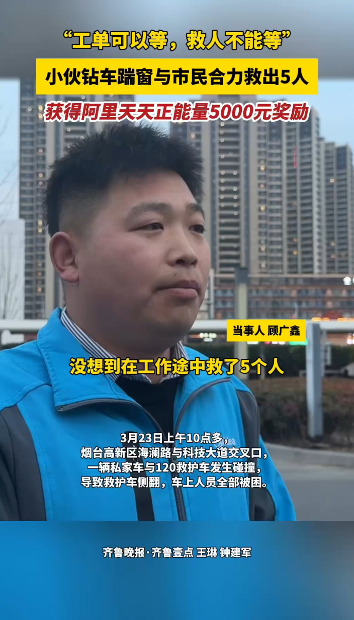 果然视频|小伙钻车踹窗与市民合力救5人,获阿里天天正能量奖励齐鲁晚报·齐鲁壹点客户端 21:53原创3月24日,齐鲁晚报·齐鲁壹点以《车辆侧翻5人被困,小伙钻车踹窗与市民合力救人》为题,报道了顾广鑫在一起车辆侧翻事故发生后踹窗救人的事迹,引发广泛关注。为弘扬社会正能量,齐鲁晚报·齐鲁壹点联合阿里公益天天正能量,授予顾广鑫“天天正能量特别奖”,并颁发5000元正能量奖金。 (齐鲁晚报·齐鲁壹点 王琳 钟建军)