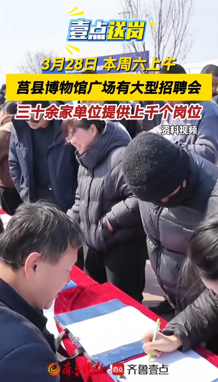 3月28日,本周六上午!莒县博物馆广场有大型招聘会,三十余家单位提供上千个岗位
