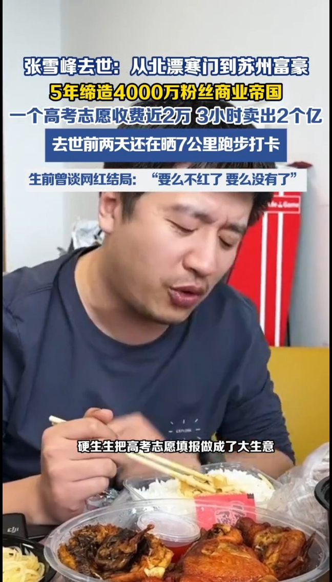 主播说 | 张雪峰去世:从北漂寒门到苏州富豪,5年缔造4000万粉丝商业帝国