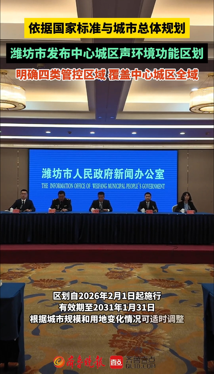 果然视频|潍坊市发布中心城区声环境功能区划,覆盖九大区域大众报业·齐鲁壹点 昨天22:413月25日,潍坊市人民政府新闻办公室召开关于潍坊市中心城区声环境功能区划新闻发布会。记者在会上了解到,该区划覆盖奎文、潍城等九大区域,依据相关法律法规及国土空间总体规划,将声环境分为1至4类四类管控区域,旨在改善声环境质量,为市民营造更加宁静宜居的城市环境。 齐鲁晚报·齐鲁壹点 实习生刘姝曈