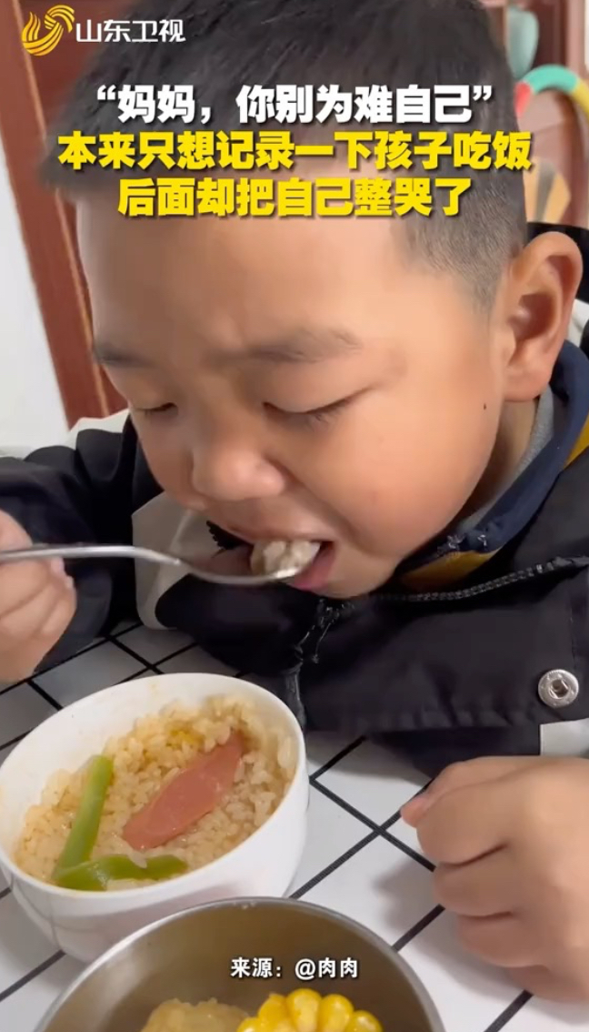 妈妈本来只是想记录一下孩子吃饭的样子,最后却被孩子说的话整哭了