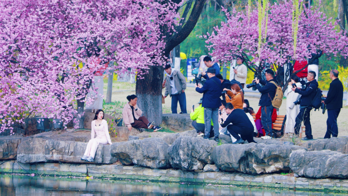 美人梅火出了圈大众新闻 | 12:17 原创大众新闻 微信扫码扫码下载客户端随着气温回暖,临沂五洲湖公园内繁花盛开,春色宜人,不少市民前来踏青赏花、拍照打卡,尽享春日美景,城市处处洋溢着生机与活力。尤其是在公园内的几颗美人梅开得正旺,引来无数摄友打卡。(大众新闻记者 杜辉升)