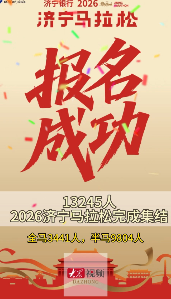 13245人!2026济宁马拉松完成集结!大众新闻 12:37原创由济宁银行冠名的2026济宁马拉松将于4月6日7:30鸣枪开赛,由山东省田径运动协会提供技术指导,济宁市人民政府主办,济宁市体育局、任城区人民政府、济宁高新区管委会、太白湖新区管委会承办。本届赛事共报名13245人,其中全马3441人,半马9804人,覆盖全国31个省、自治区、直辖市及香港、澳门、台湾地区。(大众新闻记者 孟一)