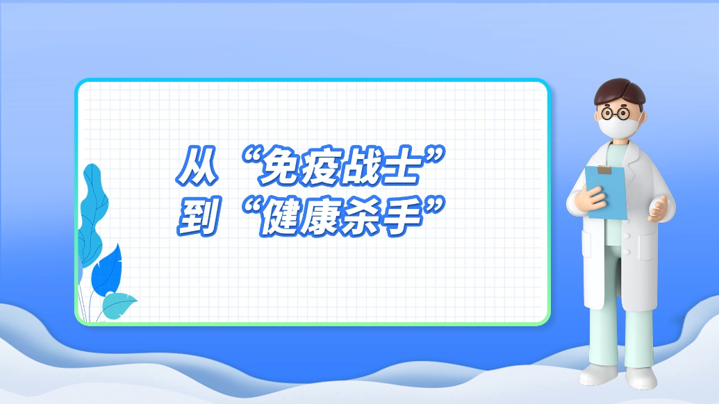 医说健康·一分钟科普丨从“免疫杀手”到“健康杀手”大众报业·齐鲁壹点 15:59为响应国家“健康中国2030”“全民健康素养提升行动”的号召,加快国民健康素养提升,不断满足人民群众日益增长的健康需求,提高全民的医疗健康意识,齐鲁晚报·齐鲁壹点启动“科普医次元·医说健康”科普宣传系列活动。——医说健康·一分钟科普丨从“免疫杀手”到“健康杀手”