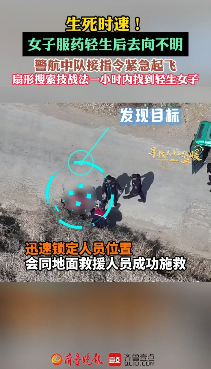果然视频|女子喝农药后失联,警航地毯式搜索一小时锁定行踪
