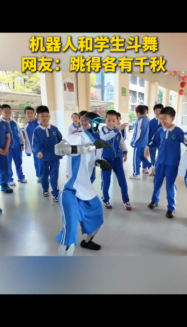 近日,广东深圳,机器人穿上校服,在校园和学生斗舞。网友:精彩!