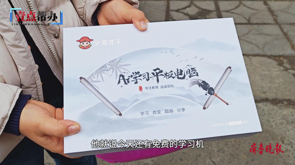 壹点帮办|天上真能掉馅饼?枣庄一老人遭遇学习机“免费”陷阱 16:11 原创齐鲁晚报·齐鲁壹点客户端 微信扫码扫码下载客户端近日,枣庄壹粉吴女士向齐鲁晚报·齐鲁壹点《壹点帮办》栏目(报料电话:0531-85193700;报料平台:“壹点帮办”微信小程序)反映称,近期她接到一个陌生电话,对方邀请她到店免费领毛毯。领完毛毯后店员说还有“免费”的学习机,本来说是“免费”最后却花了2499元。事情到底是怎么回事?壹点帮办进行调查采访。(齐鲁晚报·齐鲁壹点 靖亚如 林佩瑶 刘弘)