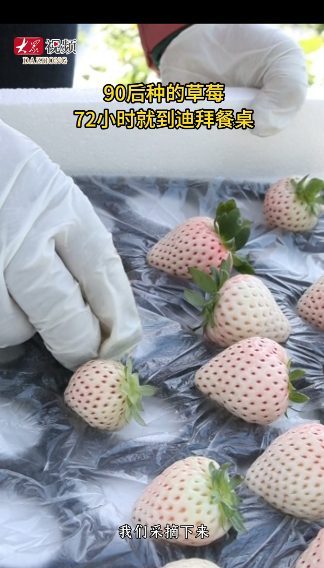 “春节前最忙的时候,一周能往迪拜发2000斤白草莓,少的时候一周也能卖过去1000斤。”3月25日,在栖霞市官道镇的一个草莓大棚里,1992年出生的于贞贞手里捏着颗粉白的草莓,“从摘下来到迪拜人吃上,就72小时。”