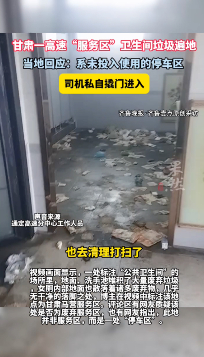 果然视频|甘肃一高速“服务区”卫生间垃圾遍地,当地:系司机私自撬门进入