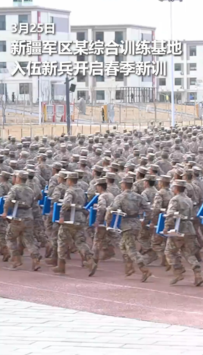 热血沸腾!新疆军区某综合训练基地内,入伍新兵整齐列队,开启春季新训