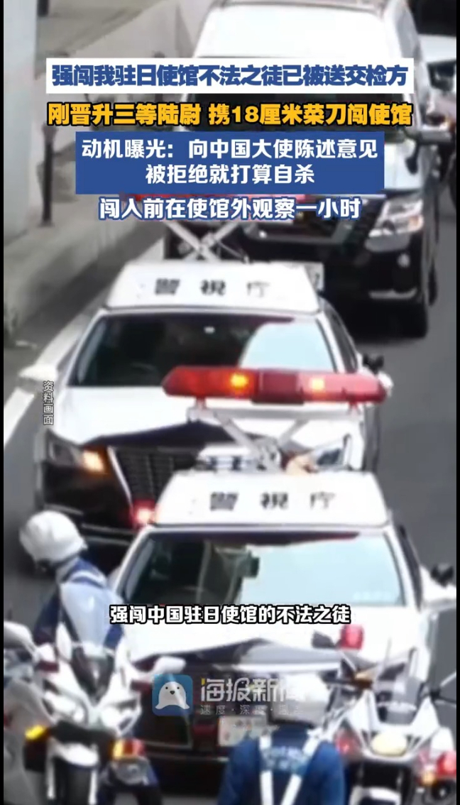 性质太恶劣!强闯中国驻日使馆的不法之徒,26日已被正式送交检方。这个人叫村田晃大,是陆上自卫队成员,本月15号才刚刚晋升为三等陆尉。