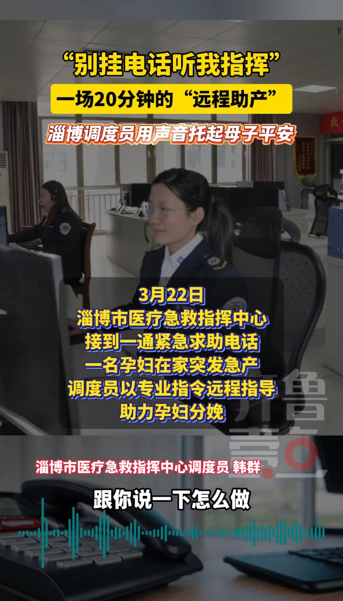 一场20分钟的“远程助产”,淄博调度员用声音托起母子平安大众报业·齐鲁壹点 15:15近日,淄博市医疗急救指挥中心的调度员韩群接到一通紧急求助电话,一名孕妇突发急产,来不及送医即将分娩。家属情绪极度紧张,在慌乱中多次挂断电话,调度员沉着冷静、反复回拨、全程在线坚守,以专业指令远程指导家属现场接生,最终母婴平安,上演了一场惊心动魄的“云端助产”生命接力。