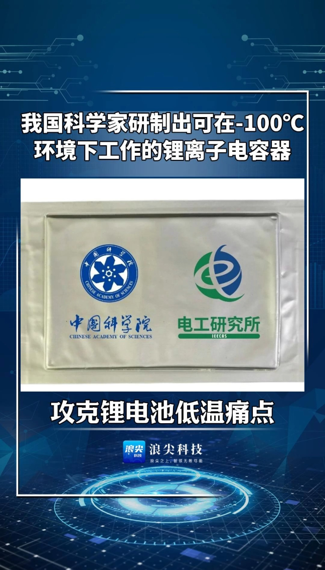 浪尖科技 | 我国科学家攻克锂电池痛点 成功研制出可在-100℃环境下工作的锂离子电容器