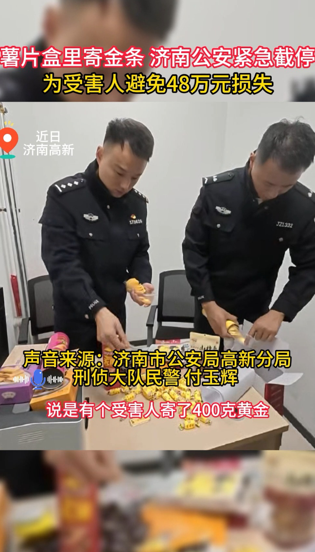 薯片盒里寄金条 济南公安紧急截停 为受害人避免48万元损失