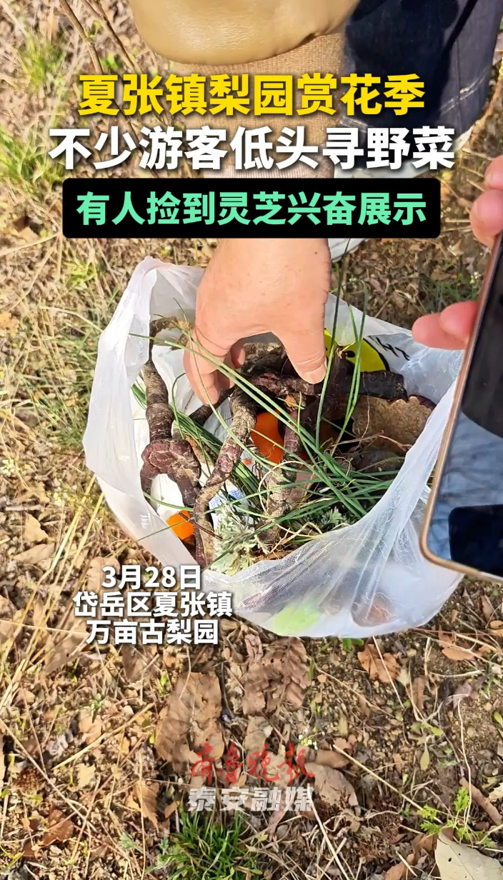 果然视频丨夏张镇梨园赏花季,不少游客低头寻野菜,有人捡到灵芝兴奋展示齐鲁晚报·齐鲁壹点客户端 16:00原创齐鲁晚报·齐鲁壹点 薛小东 3月28日,岱岳区夏张镇开展梨园赏花季活动,万亩古梨园梨花盛开。不少游客在此低头寻野菜,有人捡到灵芝兴奋展示。