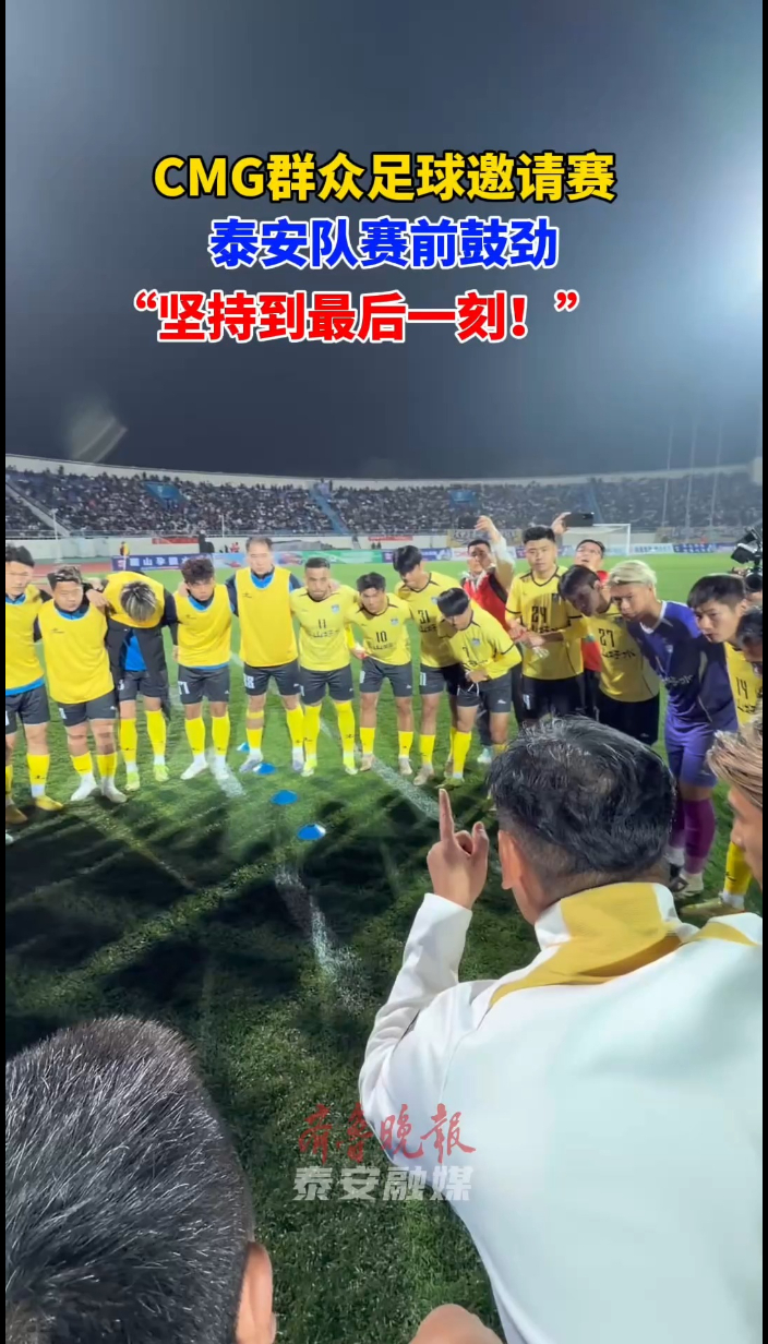 CMG群众足球邀请赛,泰安队赛前鼓劲,“坚持到最后一刻!”