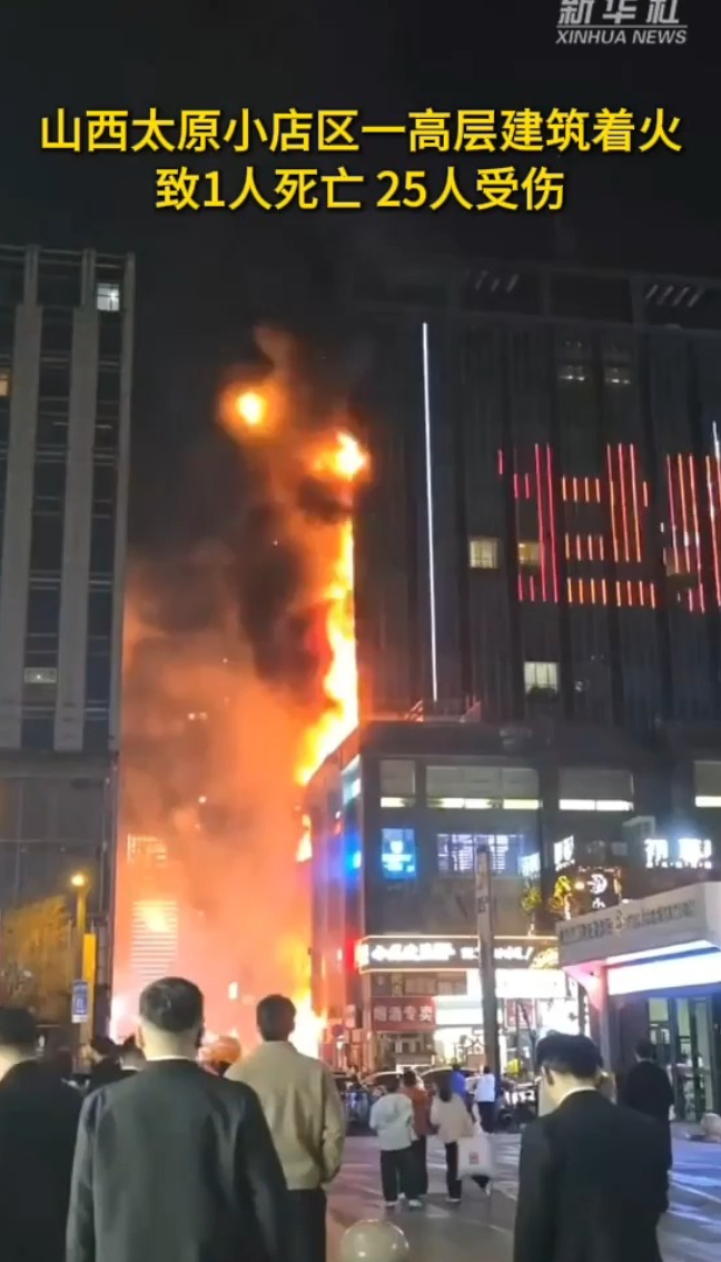 山西太原小店区一高层建筑着火致1人死亡25人受伤新华社 06:47记者从山西省太原市政府获悉,28日20时许,位于小店区亲贤北街附近的一高层建筑着火,目前明火已基本扑灭,消防救援人员正在对楼内开展搜救,目前确认有1人死亡,25人受伤,其中7人重伤。记者:徐伟、原勋新华社音视频部制作