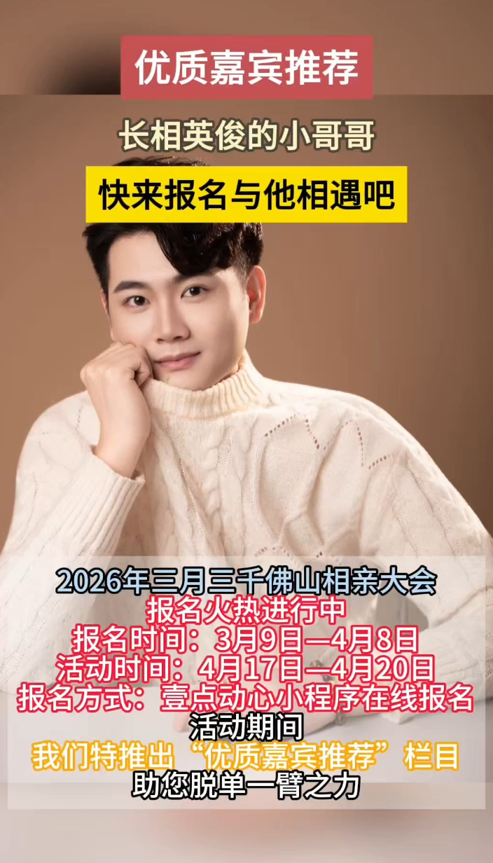 优质嘉宾推荐|身高189cm!95后英俊小哥千佛山相亲会等你 09:25 大众报业·齐鲁壹点 微信扫码扫码下载客户端(齐鲁晚报·齐鲁壹点 赵长春 实习生 李家榕 于雅雯)第20届三月三千佛山相亲大会报名火热进行中,报名截止至4月8日!活动举办时间为农历三月三期间,地点在济南千佛山风景区东门内广场。为了让您的缘分加速抵达,活动期间,我们特推出“壹点动心·优质嘉宾推荐”互动栏目,每天为您优中选优,助您脱单一臂之力!