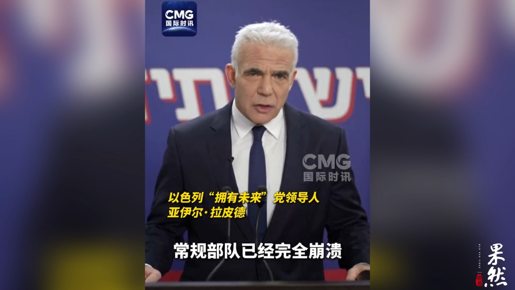 果然视频·看天下|以军参谋长报告:以军常规部队已崩溃齐鲁壹点 | 10:54 原创齐鲁晚报·齐鲁壹点客户端 微信扫码扫码下载客户端以色列反对党“拥有未来”党领导人亚伊尔·拉皮德3月26日发表电视讲话,指责总理内塔尼亚胡领导的政府迫使以色列国防军在兵力远远不够的情况下多线作战,“没有战略,缺少必要的作战手段”。他引用以军总参谋长扎米尔前一天向内阁的报告说,常规部队已经“完全崩溃”,军队没有足够的士兵执行任务,预备役士兵疲惫不堪,无法继续应对安全挑战。