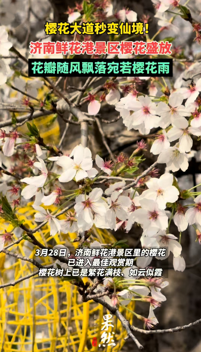 果然视频|济南鲜花港景区樱花盛放,秒变仙境