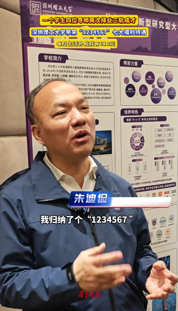 果然视频丨首次招生!深圳理工大学带来七大福利待齐鲁晚报·齐鲁壹点客户端 17:20原创3月28日上午,深圳理工大学在山东青岛举办城市宣讲会,该校党委书记朱迪俭在会上透露,深圳理工大学2026年将首次在山东招收本科生,预计招26人左右。在生活待遇方面,朱迪俭介绍说,自己规划了“1234567”七大福利待遇。 (齐鲁晚报·齐鲁壹点记者 尚青龙)