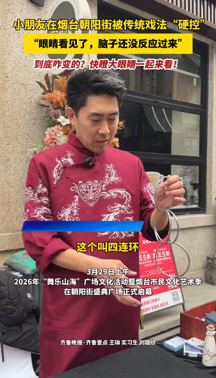 果然视频|到底咋变的?小朋友在烟台朝阳街被传统戏法“硬控”齐鲁晚报·齐鲁壹点客户端 19:54原创3月29日,2026年“舞乐山海”广场文化活动暨烟台市民文化艺术季在朝阳街盛典广场正式启幕!小朋友被传统戏法“硬控”,“眼睛看见了,脑子还没反应过来”,到底咋变的?快瞪大眼睛一起来看! (齐鲁晚报·齐鲁壹点 王琳 实习生 刘璐欣)