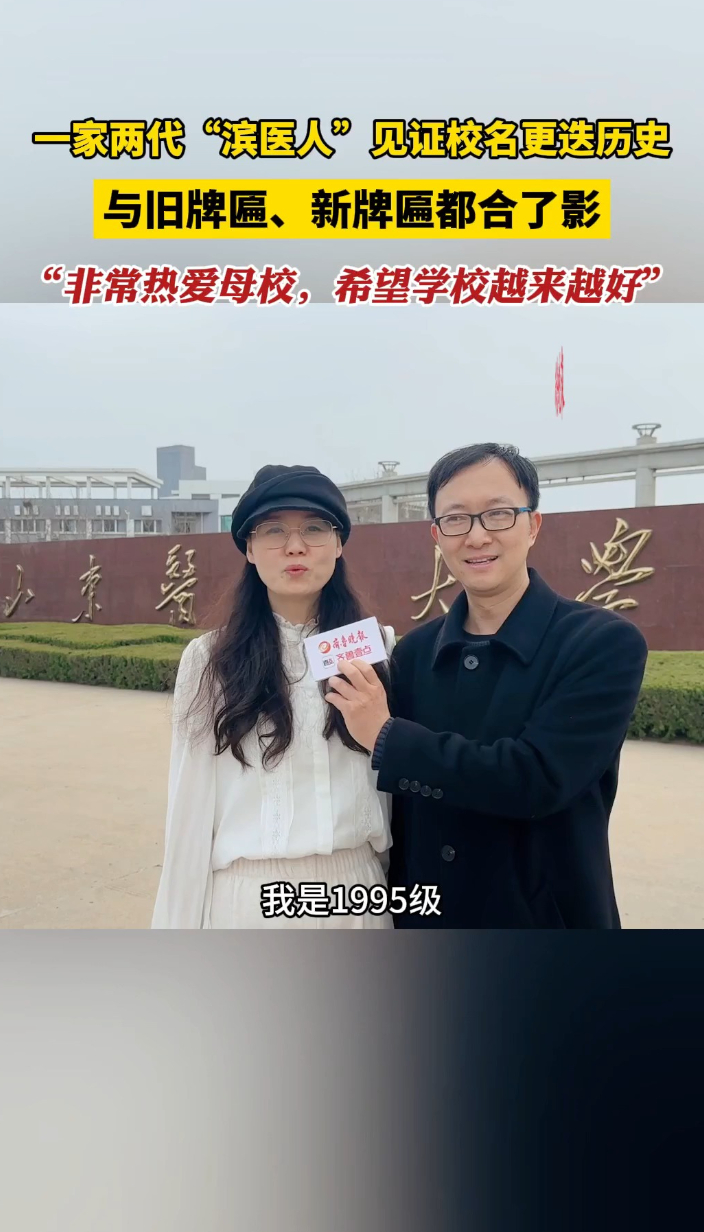 果然视频|一家两代“滨医人”见证校名更迭历史齐鲁晚报·齐鲁壹点客户端 21:28原创3月29日,位于烟台莱山区的山东医药大学正式揭牌亮相。一家两代“滨医人”见证校名更迭历史,与旧牌匾、新牌匾都合了影,“非常热爱母校,希望学校越来越好”。(齐鲁晚报·齐鲁壹点 杜晓丹)